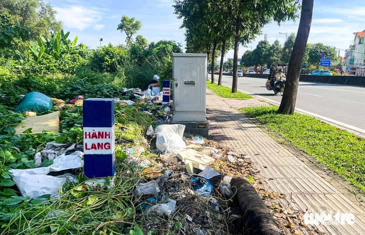 Mặt bằng để làm dự án vành đai 2, dọc đường Phạm Văn Đồng (phường Thủ Đức) biến thành nơi đổ rác bừa bãi thời gian qua - Ảnh: CHÂU TUẤN