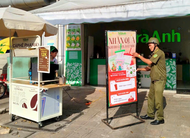Phường Tân An xử lý trường hợp lấn chiếm vỉa hè trên đường 30-4 - Ảnh: T.A.