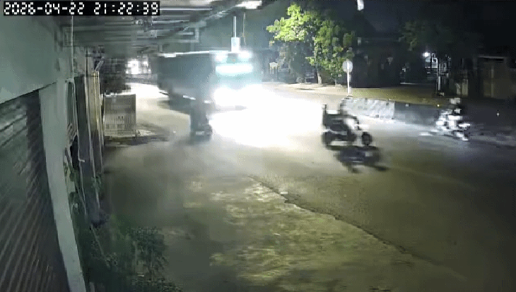 Theo đoạn video camera người dân ghi lại, vào lúc 21h23 tối 22-4 trên quốc lộ 1, đoạn qua xã Quỳnh Giang (cũ), nay là xã Quỳnh Lưu, Nghệ An có một nhóm nam thanh thiếu niên đi 3 xe máy điện tới khu vực có điểm giao cắt qua đường.