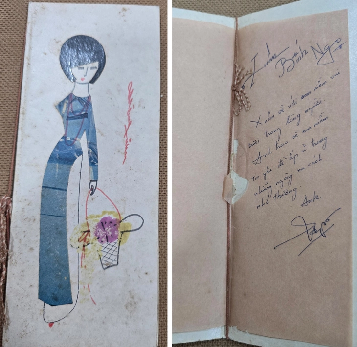 Tấm thiệp xuân với câu chữ yêu thương, mở đầu là câu "Xuân về với vạn niềm vui tươi trong lòng người..." - Ảnh chụp lại: HO