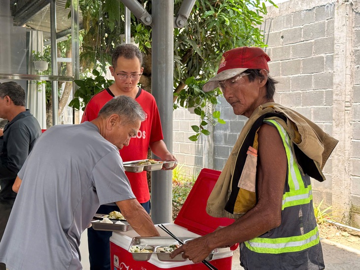 Bà con lao động đến dùng bữa trưa tại quán cơm Yêu thương - Ảnh: KHẮC TÂM
