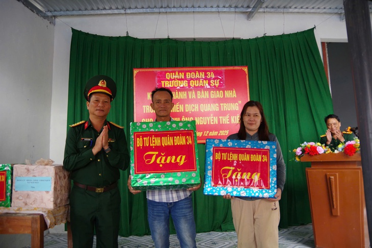 Quân đoàn 34 trao quà cho hộ ông Nguyễn Thế Kiên, trú xã Ngô Mây, Gia Lai, trong lễ bàn giao nhà ngày 25-12 - Ảnh: H.S.
