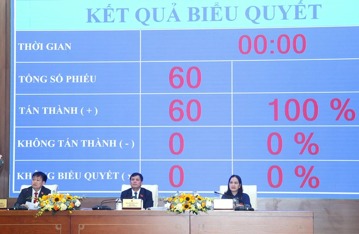 Các đại biểu tán thành, thông qua nghị quyết quy định tiêu chí thành lập các đội dân phòng tại tổ dân phố, thôn - Ảnh: TRẦN MAI
