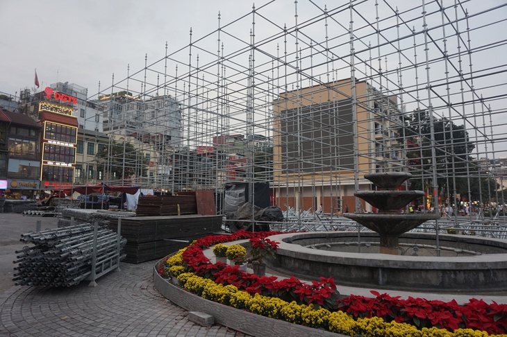 Mỗi sự kiện lại một lần tháo, lắp sân khấu, khiến quảng trường Đông Kinh Nghĩa Thục luôn trong tình trạng như đại công trường - Ảnh: T.ĐIỂU