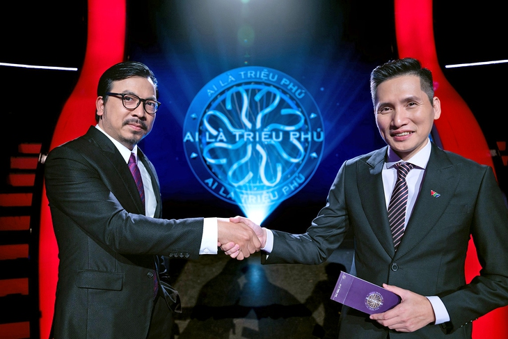 Biên tập viên Quốc Khánh (phải) dẫn Ai là triệu phú thay cho Đinh Tiến Dũng - Ảnh: VTV