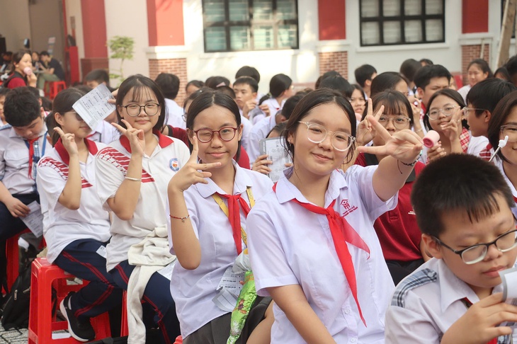 Học sinh Trường THCS Tân Sơn (phường An Hội Tây, TP.HCM) trong buổi hoạt động ngoại khóa - Ảnh: HỒ NHƯỠNG