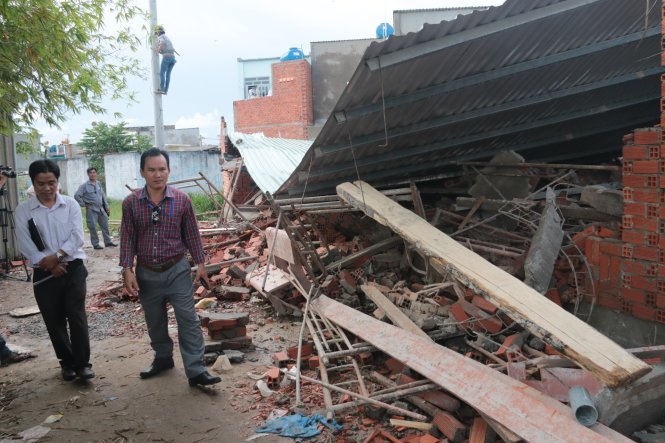 Theo đó, căn nhà đang xây dựng rộng 112m2, không có giấy phép xây dựng. Sự cố xảy ra lúc 16g30 ngày 5-11, khi trời đang mưa to, có gió lốc xoáy làm một người chết và chín người bị thương. Nguyên nhân sập nhà do công trình đang xây dựng bị ảnh hưởng của mưa và lốc xoáy.