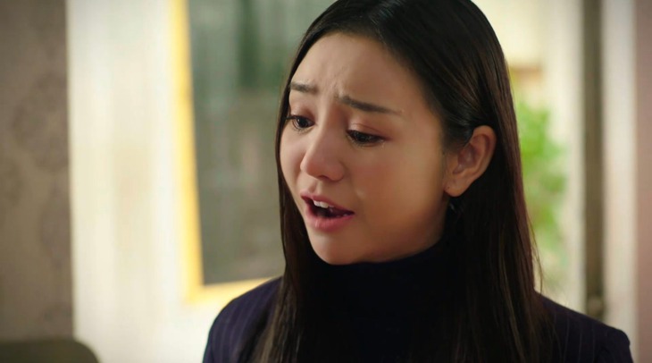 Lối diễn với ánh mắt đẫm nước và biểu cảm căng thẳng lặp lại ở nhiều phân đoạn khiến chị Thương trở nên một màu.