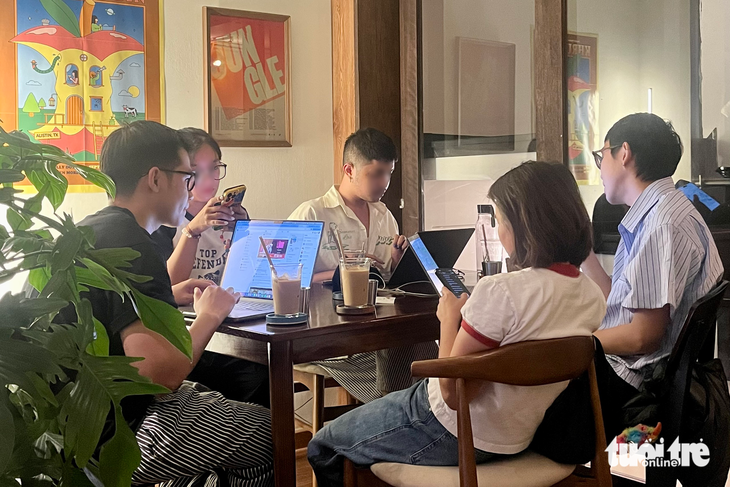Nhiều bạn trẻ chọn ra quán cà phê ngồi trao đổi và làm việc - Ảnh: L.H.