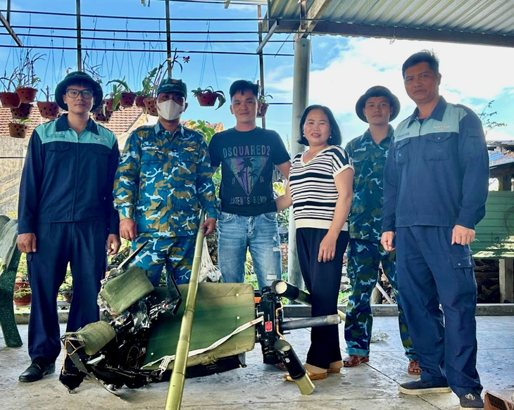 Ông Hà Hải Long (thứ 3 từ trái qua) bàn giao chiếc ghế từ máy bay Yak-130 gặp nạn cho cơ quan chức năng - Ảnh: H.L.