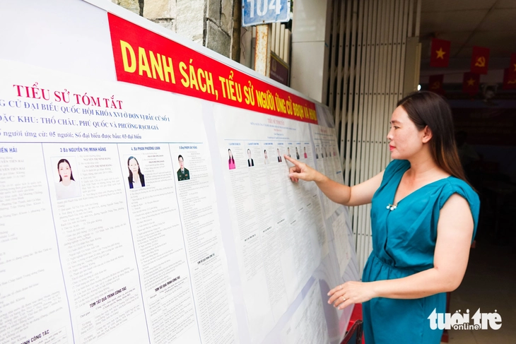 Cử tri trên địa bàn phường Rạch Giá tìm hiểu thông tin để chuẩn bị cho ngày bầu cử - Ảnh: CHÍ CÔNG