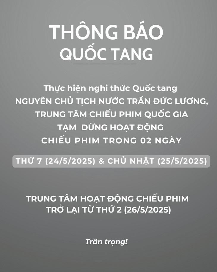 Thông báo từ Trung tâm Chiếu phim quốc gia - Ảnh: Fanpage trung tâm