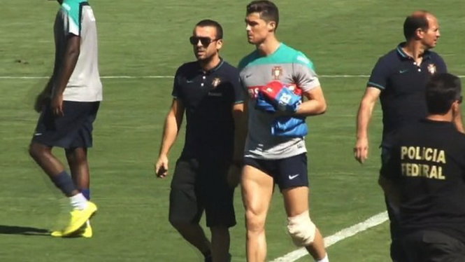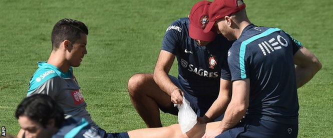 Trong buổi tập ngày 18-6 của đội tuyển Bồ Đào Nha, Cristiano Ronaldo đã bị tái phát chấn thương đầu gối từ rất sớm phải nhờ đến sự chăm sóc của các nhân viên y tế. Sau đó ngôi sao 29 tuổi này cũng phải lê bước rời sân với túi nước đá trên đầu gối trái. Chứng kiến hình ảnh này, những người yêu mến Ronaldo cảm thấy rất lo lắng vì trong suốt một tháng qua chân sút này đã rất nhiều lần bị chấn thương ở đầu gối trái.