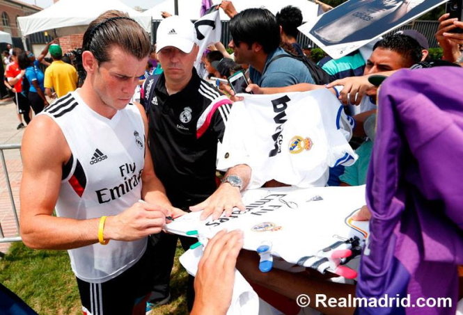 | Gareth Bale cũng phải mỏi tay ký tặng cho CĐV. Ảnh: Real Madrid FC |
