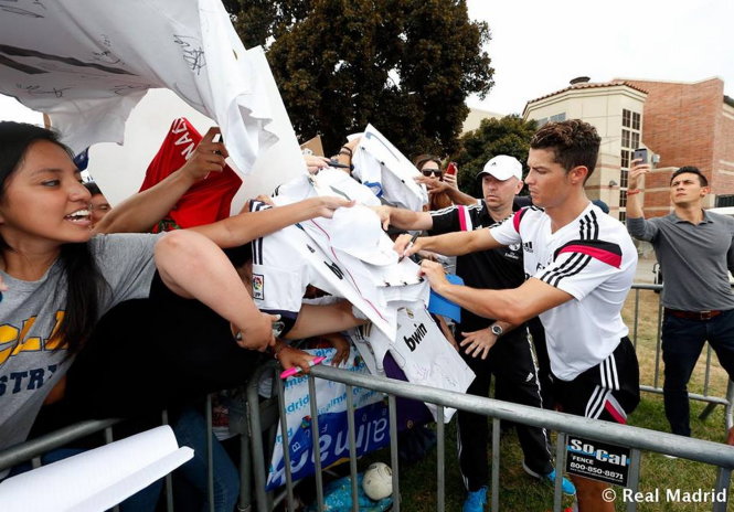 Dưới đây là những hình ảnh đón tiếp nồng nhiệt của CĐV Mỹ dành cho Ronaldo và nhiều ngôi sao nổi tiếng của Real Madrid: