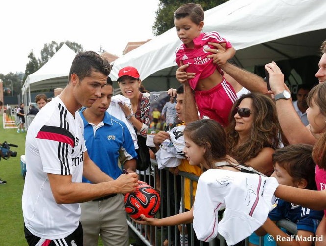 | Có nhiều CĐV ẵm con để xin chữ ký của Ronaldo. Ảnh: Real Madrid FC |
