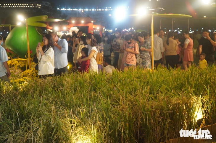 Lúa được "trồng" giữa quảng trường Hùng Vương và trở thành một điểm thú vị để người dân chụp ảnh