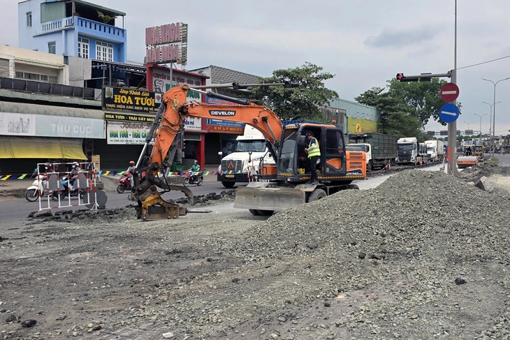 Nhà thầu huy động thêm nhân lực, máy móc làm việc cả ngày lẫn đêm để rút ngắn thời gian thi công sửa chữa, nâng cấp trên quốc lộ 51 - Ảnh: A LỘC