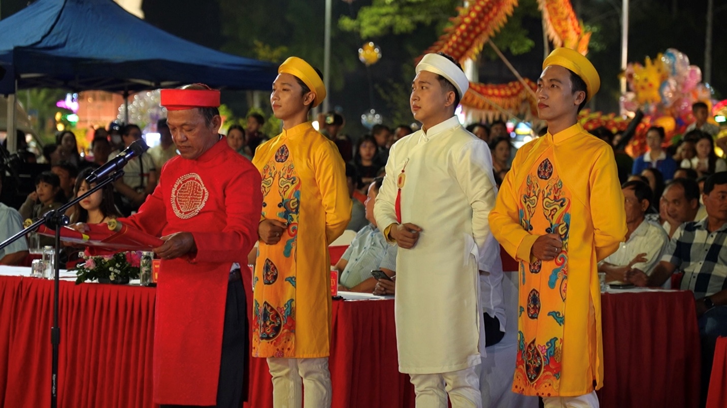 Tái hiện một phần nghi lễ tri ân tiền nhân nghề trồng hoa, kiểng đầy trang nghiêm - Ảnh: VĨNH SƯƠNG