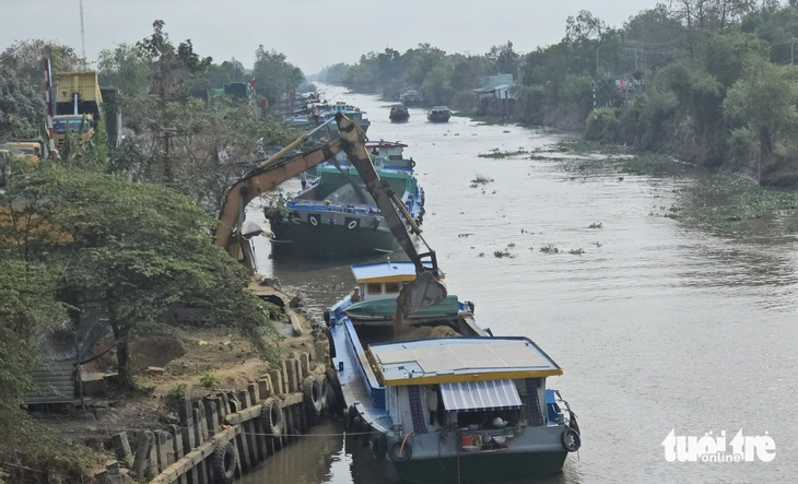 Sà lan tại đoạn kênh Tám Ngàn từ cầu Cây Me về bến đá Antraco chờ lấy đá - Ảnh: BỬU ĐẤU