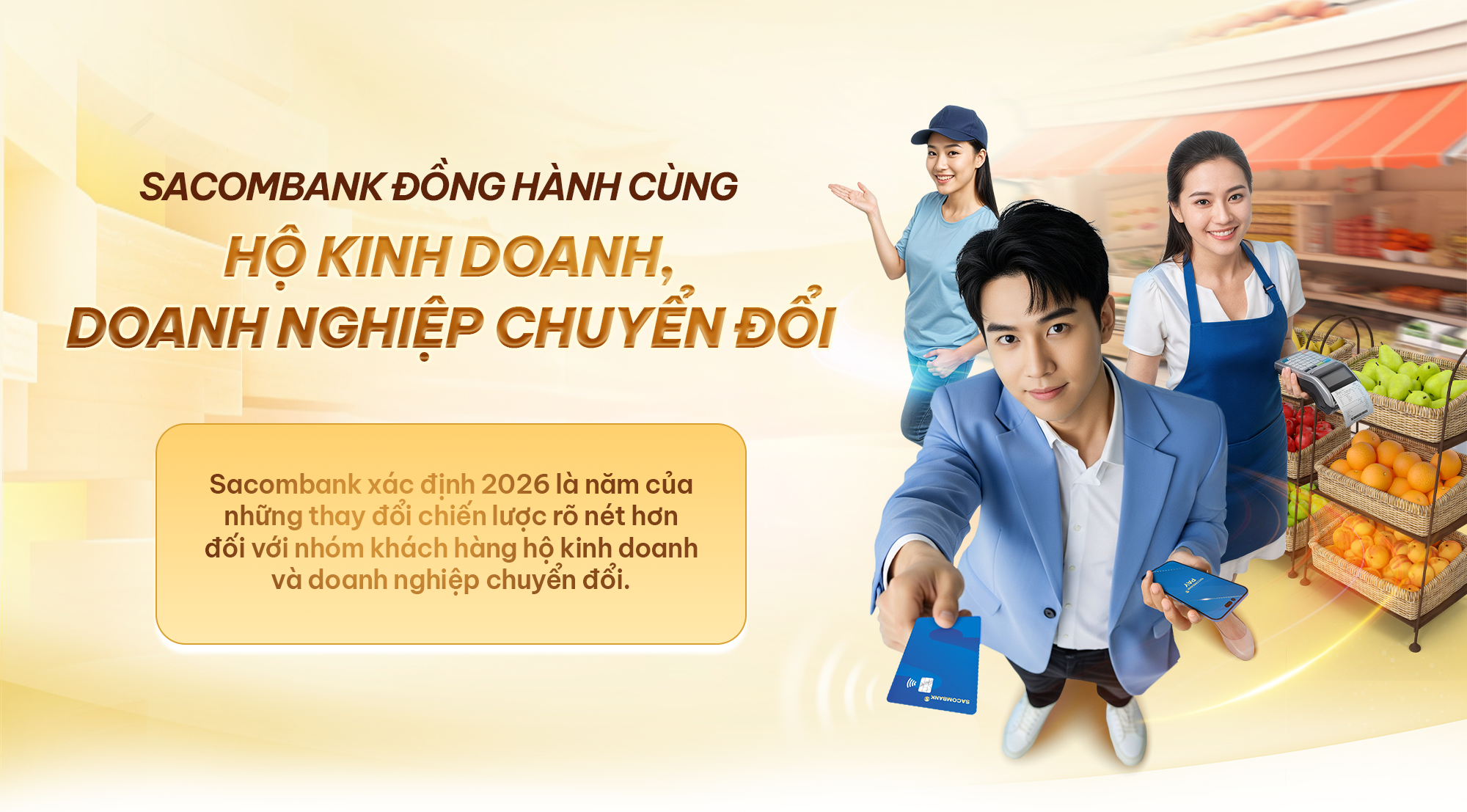 Trong tiến trình đó, Sacombank lựa chọn đứng ở vị trí của một đối tác phát triển dài hạn - sẵn sàng đồng hành cùng hộ kinh doanh và doanh nghiệp từ những thay đổi nhỏ nhất trong vận hành, để cùng kiến tạo những bước tiến lớn hơn, bền vững hơn trong tương lai.