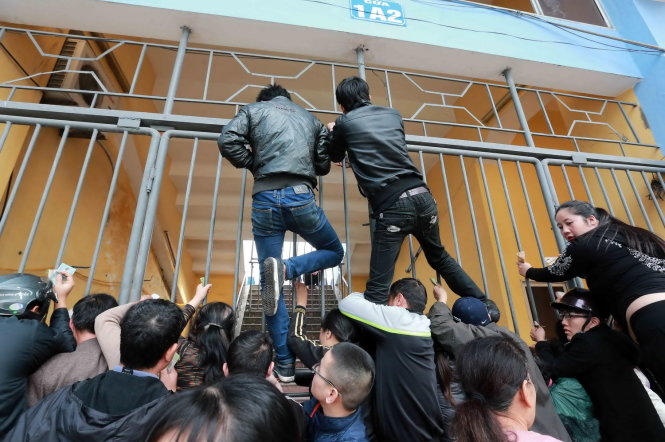 | CĐV leo trèo tìm cách mua được vé. Ảnh: Nam Khánh |