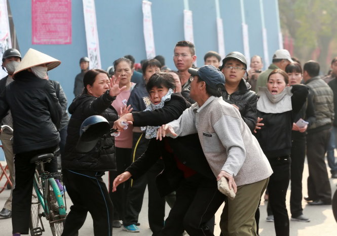 | Phe vé đánh nhau, tranh giành vé sau khi nhờ người khác mua hộ. Ảnh: Nam Khánh |