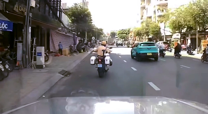 Cán bộ cảnh sát giao thông Hàng Xanh dẫn đường xe chở sản phụ đau bụng đến bệnh viện kịp thời - Ảnh cắt từ clip