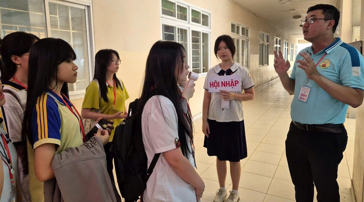 Học sinh lớp 9 ở TP.HCM tìm hiểu về tuyển sinh lớp 10 tại Trường THPT Nguyễn Hiền, phường Phú Thọ - Ảnh: H.H.