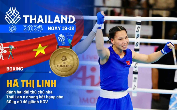 15h39, Boxing, Hà Thị Linh đánh bại đối thủ chủ nhà Thái Lan ở chung kết hạng cân 60 kg nữ để giành HCV.