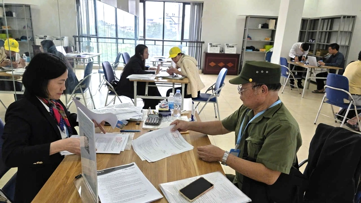Người dân làm thủ thục mua bán nhà ở xã hội tại dự án Kim Chung, TP Hà Nội - Ảnh: B.NGỌC