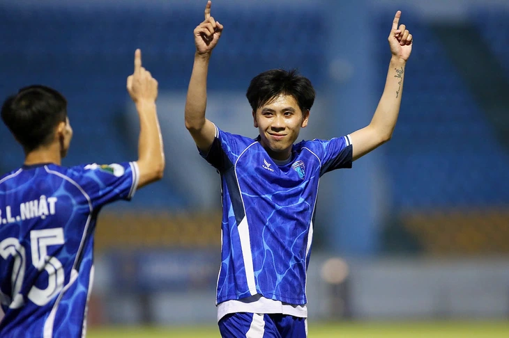 Trên chấm đá phạt, đội trưởng Bùi Văn Hiếu ghi bàn đưa CLB Quảng Ninh vươn lên dẫn trước ở phút 42.