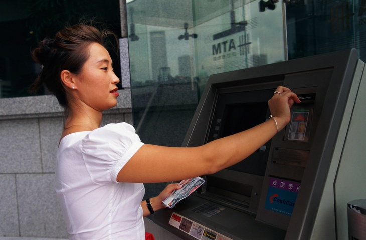 Người dân rút tiền đô la Singapore từ máy ATM tại Singapore - Ảnh: mothership.sg