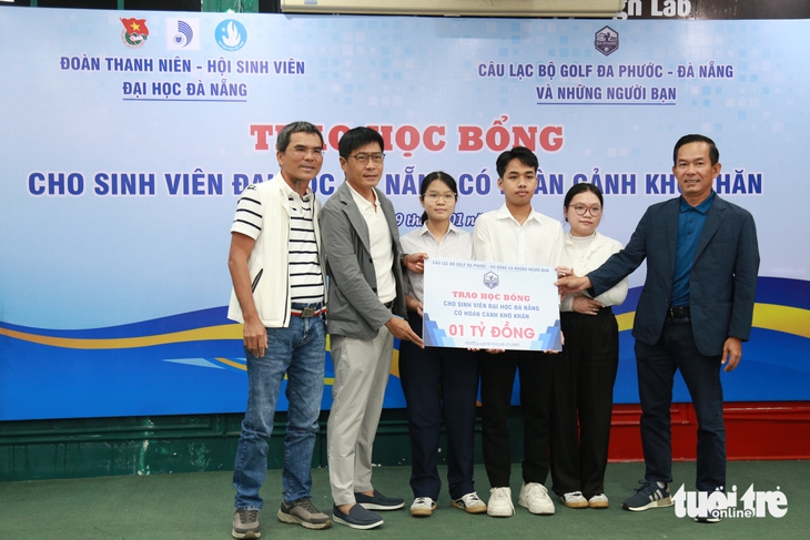 Ông Dương Việt Hùng, đại diện CLB Golf Đa Phước - Đà Nẵng, cho biết câu lạc bộ và các nhà hảo tâm đã trao 32 suất học bổng, tổng trị giá 1 tỉ đồng, mỗi suất tương đương học phí 1 năm của sinh viên.