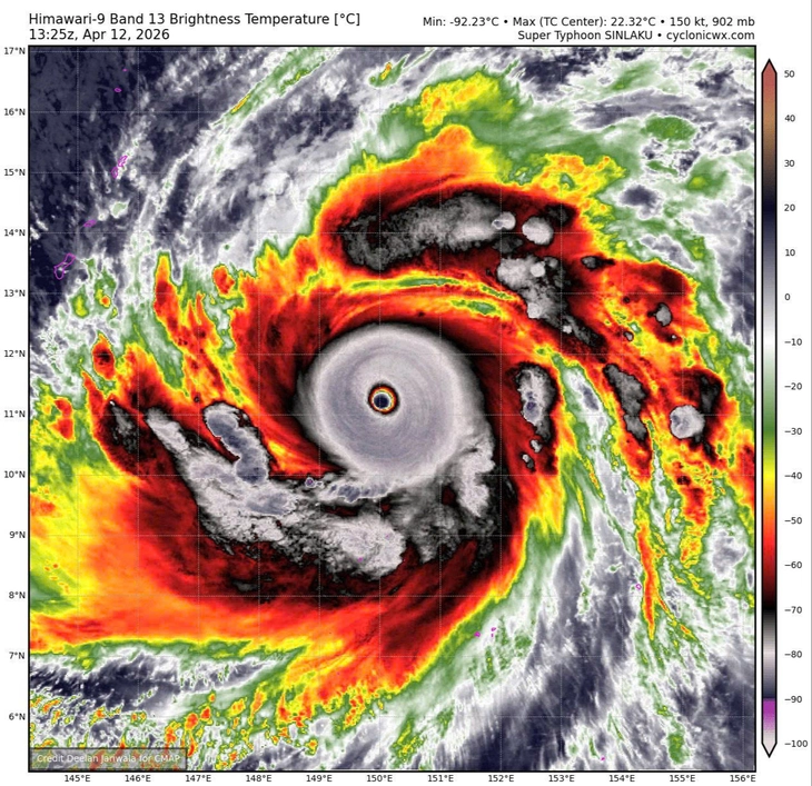 Trung tâm Dự báo khí tượng thủy văn quốc gia cho biết tối 12-4, bão Sinlaku ở vùng biển tây bắc Thái Bình Dương đã mạnh thành siêu bão. Sức gió mạnh nhất vùng gần tâm bão mạnh cấp 16 (190km/h), giật trên cấp 17.