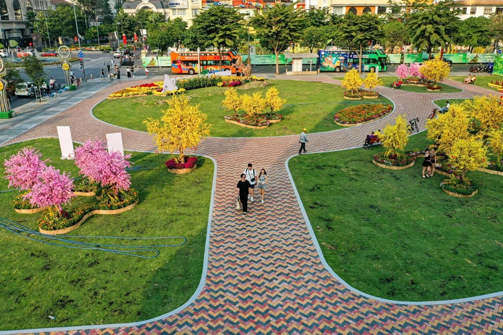 Khu đất 135 Nguyễn Huệ (thương xá Tax) được chỉnh trang thành công viên phục vụ người dân TP.HCM dịp Tết Bính Ngọ - Ảnh: TRÍ ĐỨC