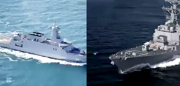 Hình ảnh hai con tàu của Venezuela (trái) và của Mỹ có cuộc đối đầu trên biển Caribe trên mạng xã hội - Ảnh: X