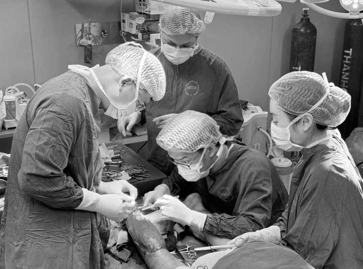 Trong cuộc đại phẫu kéo dài 6 giờ đồng hồ, ê kíp tạo hình đã phối hợp với chuyên khoa chấn thương chỉnh hình để nạo sạch tổ chức viêm và mô hoại tử trong xương trước khi thực hiện kỹ thuật vi phẫu phức tạp.
