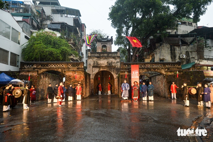 Khoảng 7h ngày 8-2, Lễ Mở cửa Ô diễn ra trang nghiêm tạo nên khoảnh khắc linh thiêng và giàu tính biểu tượng - Ảnh: PHÚC TÀI
