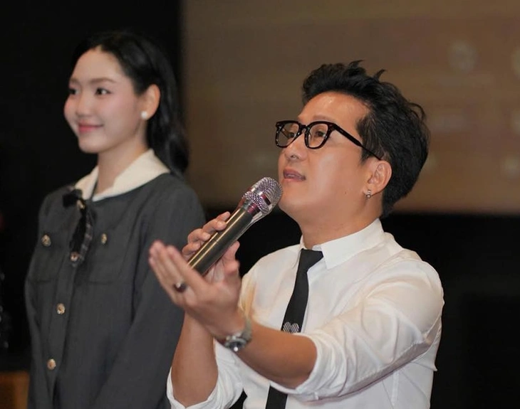 Đạo diễn - diễn viên Trường Giang và diễn viên Đoàn Minh Anh giao lưu khán giả vừa qua - Ảnh: ĐPCC