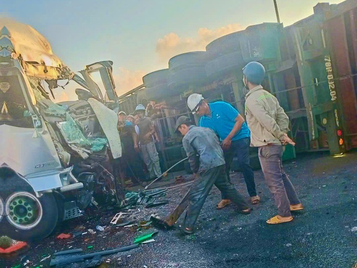 Khi chạy đến địa điểm trên thì xe tải xảy ra tai nạn với xe đầu kéo container biển số 78C-044.xx do ông Đoàn Văn Thu (40 tuổi, trú xã Tuy An Nam, Đắk Lắk) điều khiển, đang quay đầu xe.