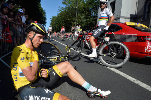 | Áo vàng Tony Martin đau đớn sau cú ngã - Ảnh: Reuters |