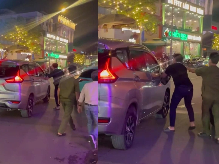 6 hành khách xuống xe, hai người đàn ông trong nhóm vẫn chửi bới và lao tới đánh ông Lợi, gây thương tích ở cổ, đầu rồi đạp gãy kính chiếu hậu.