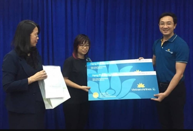 Do cụ Oki Toshiyuki đã về Nhật Bản, đại diện nhận cặp vé trên là chị Lê Thục Anh - người nhà của cụ.