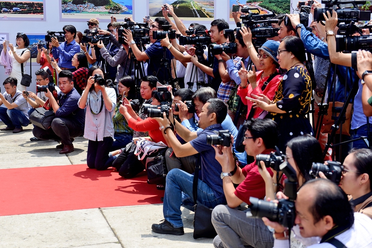 Phóng viên tác nghiệp tại sự kiện ở TP.HCM - Ảnh: QUANG ĐỊNH
