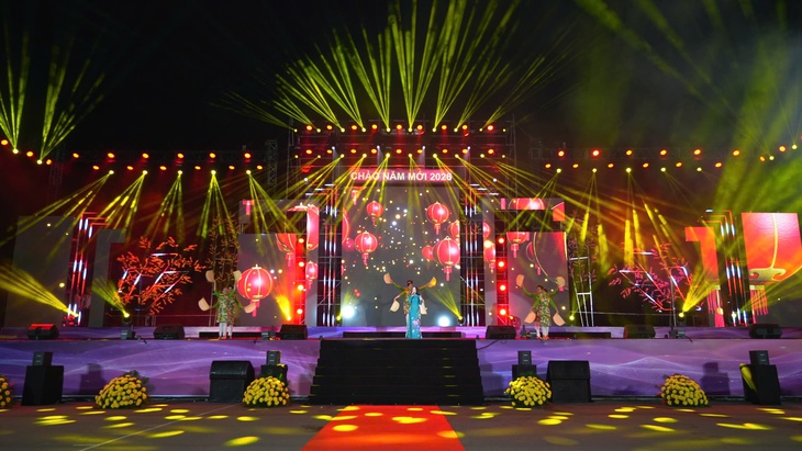 Chương trình văn nghệ đón năm mới tối 31-12-2025 tại quảng trường Tô Quyền. Nơi đây sẽ tiếp tục diễn ra chương trình nghệ thuật và bắn pháo hoa trong đêm giao thừa - Ảnh: QUANG LẬP