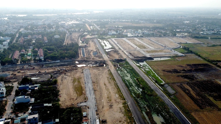 Đoạn dự án vành đai 4 TP.HCM qua xã Bến Lức, Tây Ninh trùng với ĐT.830E đang được xây dựng - Ảnh: SƠN LÂM