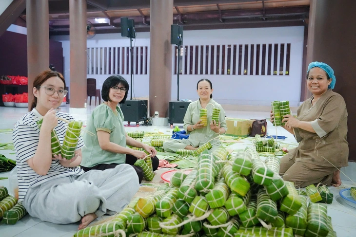 Gói bánh, gói yêu thương, chia sẻ - Ảnh: TUỆ NGỘ