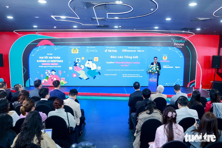 Toàn cảnh tọa đàm “Vui Tết an toàn - không lo deepfake” vừa được Hiệp hội An ninh mạng quốc gia phối hợp cùng TikTok Việt Nam tổ chức - Ảnh: CHÍ HIẾU