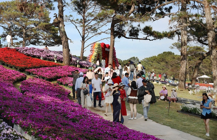 Du khách vui xuân tại vườn hoa Đà Lạt, Lâm Đồng dịp Tết Bính Ngọ - Ảnh: M.V.